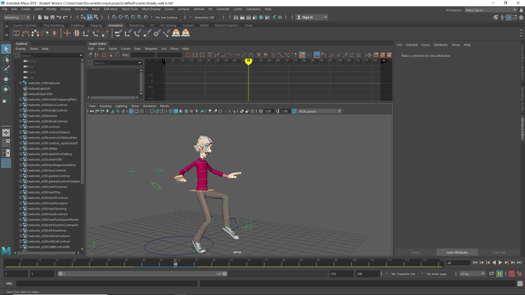 I enjoyed doing this scene, whilst simple it was quite educational. Many of the walk cycles I had done in the past were either extremely basic ones done in 3ds Max or done through mo-cap. This gave me much more freedom and a way to get creative with an otherwise basic task.
